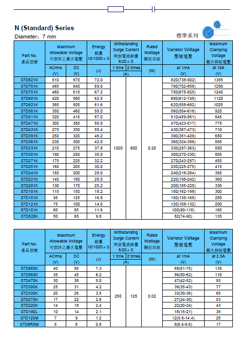 VDR-07D270Ktiempo de espera: