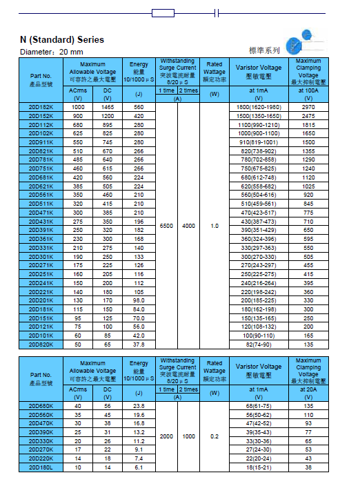 bluelos varistores utilizados en el platooninsert son principalmente los de 20 mm de gran tamaño, la capacidad de flujo del producto es de 10 k y la capacidad de aumento es de 20 kv. se utiliza en protección contra sobretensiones para evitar que el voltaje excesivo provoque el agotamiento del producto que es un producto de protección de seguridad y ha pasado la certificación ul y la certificación csa canadá, vde certificación de los Estados Unidos, la compañía se ha centrado en la producción de sobretensión para obtener más de más de 20 años, la empresa siempre ha sido la calidad del producto como el centro y dedicada a productos de confiabilidad, si tiene problemas con los productos técnicos, la empresa puede resolverlo rápidamente por usted.