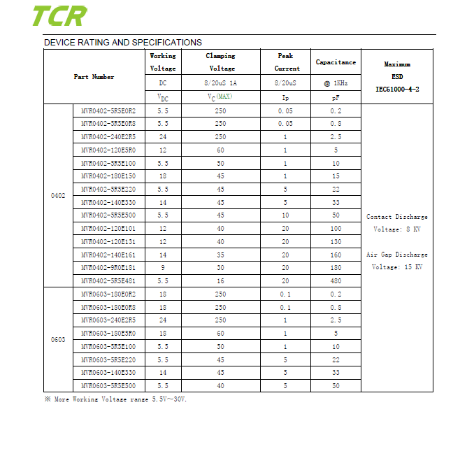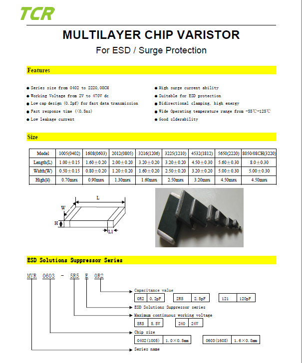 bajo diseño de tapa (0.05pf-56pf) para una transmisión de datos rápida, rápida tiempo de respuesta (& lt; 0.5ns), baja corriente de fuga, adecuado para protección de esd, operación amplia rango de temperatura de -55 ℃ -125 ℃, tamaño de serie de 0402,0603,0805,1206