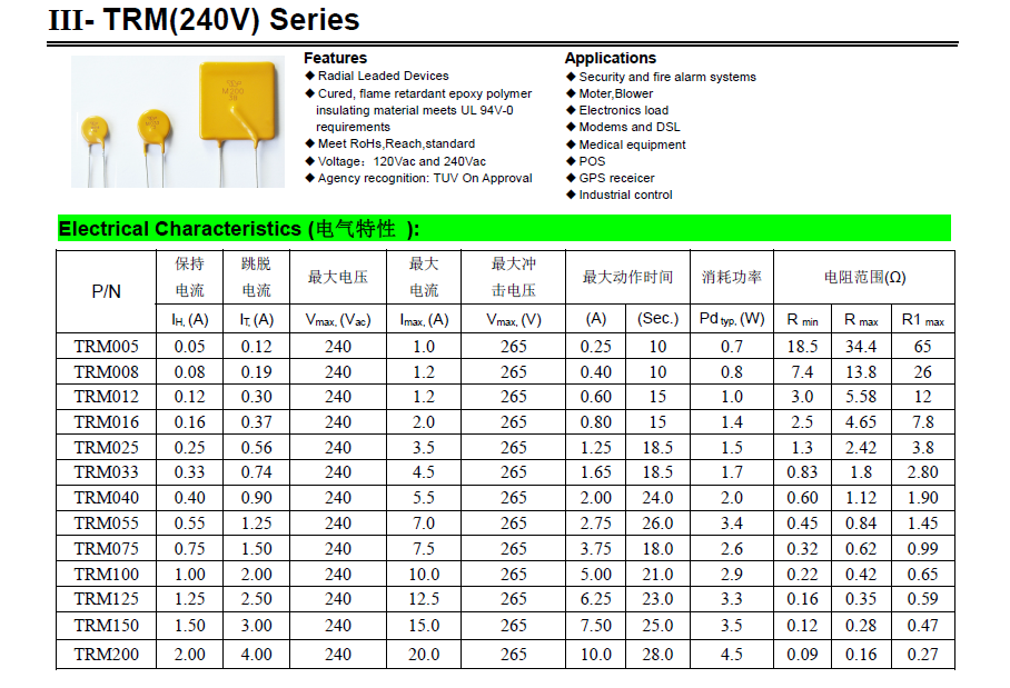 el voltaje del producto es 240v, la corriente es 0.55a, el voltaje de impulso máximo es 265v, la resistencia interna mínima es 0.45 Ω y el máximo es 1.45 Ω.