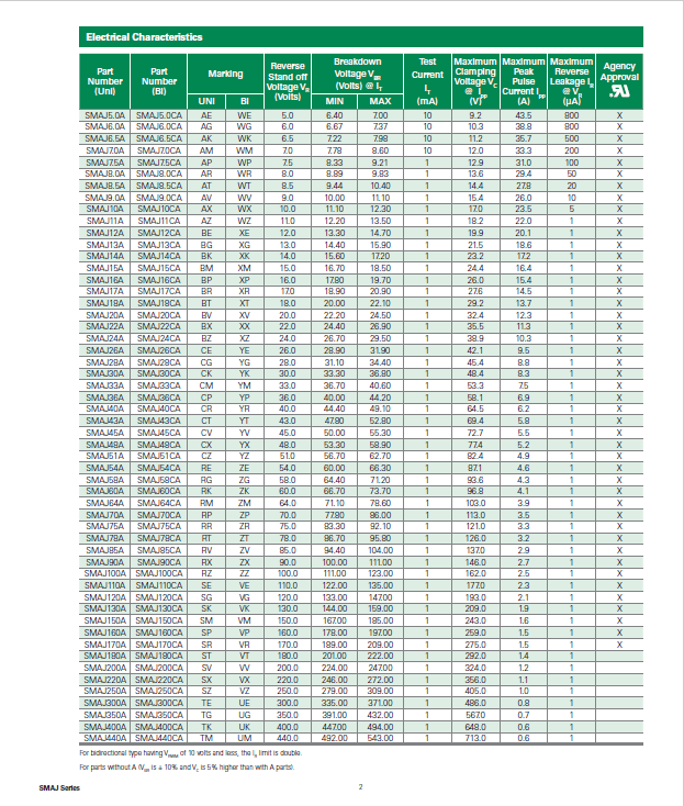 paquete: do-214aa voltaje: 5v-440v, unidireccional y bidireccional más paquetes: sot-23, sot-26, sot-363, sot143, sot-563, sop-8, sop-10, sop16, smaj, smbj, smcj, smdj, 5kp, etc.