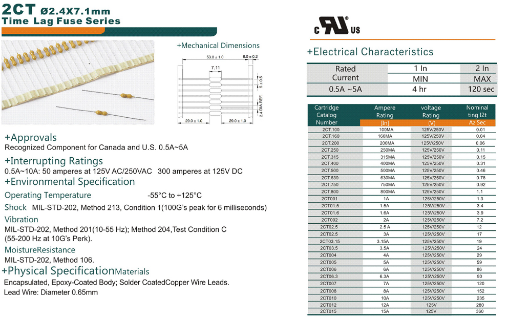 fusible de resistencia 0.5a-5a, & nbsp; voltaje 125vac y 250vac, temperatura -55 ℃ a + 125 ℃