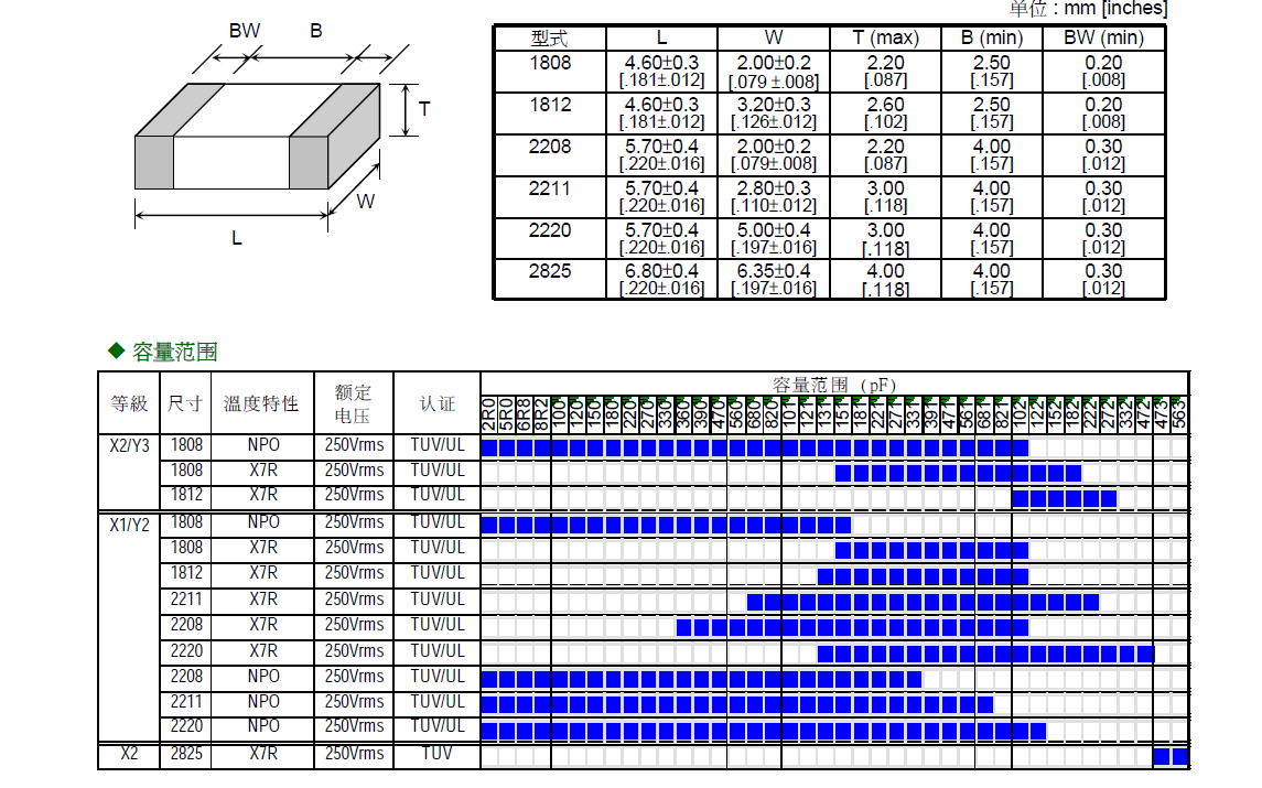 tamaño 2220, capacidad 4.7nf, voltaje 250vac, serie x2 / y3 y x1 / y2